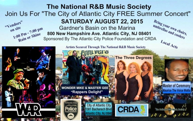 Atlantic City get your lawn chairs ready! The Voice will be heading your way Sat. August 22, 2015 for their final FREE Summer Concert Featuring: R&B Recording Artists, WAR THE BAND, Wonder Mike & Master Gee “Rappers Delight”, and The Three Degrees. Hosted By Maurice The-Voice Watts.. Local Acts will open the show. Bring your,…
